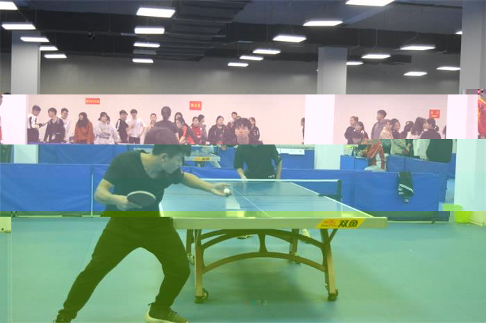 首先進行的是男女子團體賽,賽場上,運動員積極的為比賽做着熱身準備,随着裁判員的哨聲響起,比賽正式開始。首先發球的是對方運動員,他調整好進攻角度,壓低身闆,雙腿微曲,将球抛出,快速收臂,銀白色的小球劃着優美的弧線向我方飛來。我方運動員目光緊盯來球,準确判斷球的落點,迅速調整身位,側身迎擊,将球擋了回去。雙方運動員你來我往,一次次精彩的快攻、旋球、扣殺,赢得觀衆的陣陣掌聲。我方隊員聚精會神不敢有絲毫懈怠,專注于台上躍動的小球,無論是對方的旋球還是側邊球都能從容應對,同時發起猛烈進攻,有時一個快如閃電的飛球讓對手防不勝防;有時一個側邊球讓對手手忙腳亂;有時一個下砍球使球高高飛起。場外,啦啦隊一次次整齊響亮的口号将比賽現場的氛圍一度推入高潮。經過将近兩個小時的激烈角逐,最終,我院以男子團體3:2、女子團體3:0的成績戰勝體育學院,取得了首場比賽的勝利。